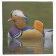 Wild Mandarin Duck (Aix galericulata) on dark green lake, UK David J. Slater / DanitaDelimont.com