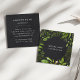 Chic botanical business cards in a unique square format feature your name or company name encircled by a round border of painted watercolor botanical leaves in rich shades of green. Add your full contact information to the back in white on luxe black cardstock. A unique and elegant choice for aestheticians, skin specialists and any business with a green, nature or wellness focus.