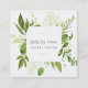Chic botanical business cards in a unique square format feature your name or company name encircled by a round border of painted watercolor botanical leaves in rich shades of green. Add your full contact information to the back in white on forest green, along with a customizable QR code. A unique and elegant choice for florists, floral designers, landscape design or any business with a green or wellness focus.