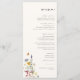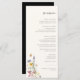 Elegant Watercolor Wildflower Floral Arrangement, wedding menu. Features, black typography on soft beige and coordinating solid black color backing.