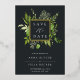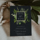 Our Wild Meadow wedding save the dat frames the words "save the date" with an elegant square border of lush watercolor foliage in fresh shades of spring green, with real gold foil trim on a rich charcoal background. A modern and elegant take on the botanical trend for spring or summer weddings in fresh green and white.