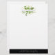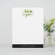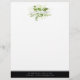 Elegant botanical letterhead design displays your name and/or business name framed by a watercolor greenery logo in shades of fern and forest green. Add your business contact information along the bottom in white on contrasting rich black.
