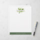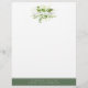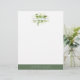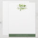 Elegant botanical letterhead design displays your name and/or business name framed by a watercolor greenery logo in shades of fern and forest green. Add your business contact information along the bottom in white on coordinating forest green.
