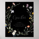This wild multicolor floral black wedding open bar sign is perfect for a rustic wedding. The design features watercolor pink, blush, purple, navy and white elegant flowers with emerald green leaves in a dark bacground.