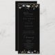 This wild multicolor floral black wedding program is perfect for a rustic wedding. The design features watercolor pink, blush, purple, navy and white elegant flowers with emerald green leaves in a dark background.