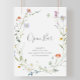 This wild multicolor floral wedding open bar sign is perfect for a rustic wedding. The design features watercolor pink, blush, purple, navy and white elegant flowers with emerald green leaves.