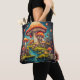 This unique shopping tote bag features an illustration of a group of mushrooms growing wild. This item would make an awesome and useful gift idea.