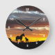 Wild Mustang Mare and Foal Silhouette With Sunset Round Clock