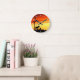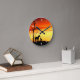 Wild Mustang Mare and Foal Silhouette With Sunset Round Clock