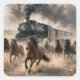Wild Mustangs Running Alongside Vintage Train Square Sticker