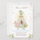 Plain white envelopes are included with paper invitations and will come to fit the invitation size you select. If you don’t need the envelopes, you may choose to not receive them by selecting the dropdown below "Envelopes" and choosing "None." If you’d like to have a design on your envelopes, you can browse all of these available envelopes to find the design that complements your Wild One Birthday Invitation Teepee Boho Girl.