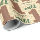 Choose a wrapping paper to compliment a safari birthday party look. This typography 1st birthday gift wrap in brown, tan and green with a tan giraffe pattern background will pull it all together for your wild one's special day.