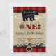 Wild One Buffalo Plaid Little Bear Birthday Invitation