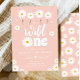 Wild One Daisy Boho Retro Pink Girl First Birthday Invitation