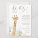 Wild One Giraffe White Floral Gender Neutral Baby Invitation