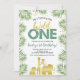 Wild One Green Gold Safari Animals 1st Birthday Invitation