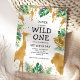 Wild One Jungle Safari Gold Green 1st Birthday Invitation