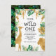Wild One Safari 1st Birthday Green Gold Black Invitation