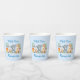 Watercolor Safari Jungle Animals Wild One First Birthday Party Paper Cups. Baby Animals include Elephant, Monkey, Giraffe, Rhino, Zebra and Lion on fern leaves. Watercolor Botanical Greenery. Blue Text. Blue Background.