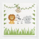 Perfect for a gender neutral baby shower this wild one safari animals napkin has everything from the safari including lion, zebra, elephant, monkey, and plants from all around.