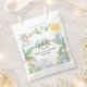 Baby shower napkins featuring watercolor illustrations of a monkey, parrot, rhino and giraffe sitting amongst a green jungle background. The font styles, size and color can be changed by clicking on the customize further link after personalizing.