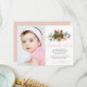 Adorable boho style thank you cards for your little wild one's third birthday party feature a sweet baby bear wearing a feather, flanked by pastel flowers and leaves. Personalize with your custom pre-printed message of thanks, and add a favorite photo of the birthday girl on the left side. Cards reverse to solid blush pink.