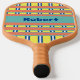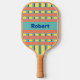 Add a touch of fun and whimsy to your Pickleball Paddle, with this wild plaid design. The vertical stripes are a bold yellow, white and blue. The horizontal lines are orange and green. On the front of the paddle there is an area for you to personalize your paddle. These paddles are approved for use by USA Pickleball (formerly USAPA). They are printed with my original patterns and designs; almost all can be customized. You can choose your grip color, black, white or tan. For an additional cost you can purchase a protective cover and an outdoor Pickleball Ball.