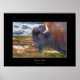 A huge Bull Buffalo stands atop a cliff ledge in the Dakota Badlands. He is proud and descended from an ancient tribe. He dreams of running with the Bison herds that claimed the American plains long before white men came. His name is Dakota Blue.