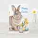 This Easter greeting card features a digital color pencil drawing of a wild rabbit, vibrant Easter eggs, and yellow daffodil flowers, accompanied by a "Happy Easter" message. Upon opening, the card reveals an illustration of a mother rabbit and baby bunny on the left, while the right side displays the greeting, "May this Easter bring gentle moments, warm memories, and blessings that last all year." Purchase this card as is, or personalize it to create a truly thoughtful holiday card for your family and friends.