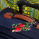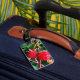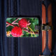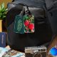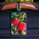 Make your luggage stand out on an airport carousel with unique tag designs like this stylish, modern fine art tag. It features wild red raspberries. Two juicy berries with a cerise color are attached to the red brown bramble branches. Green leaves and an aqua turquoise background complete the abstract design. Customize the reverse side with your personal information.