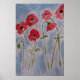On a hot summer afternoon the wild red poppies dance in the breeze. With vivid scarlet petals, black centers and green stems and leaves this is a charming original watercolor. Bring all the beauty of these red summer flowers into your home when you choose these gorgeous wild poppies.