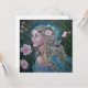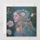 Wild rose fairy square greeting card with my oil painting : Titania fairy queen. Blank inside.