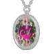 WILD ROSES WITH PINK FUCHSIA GEM STONE SILVER PLATED NECKLACE