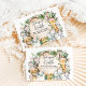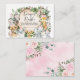 Rustic jungle themed diaper raffle card featuring adorable watercolor illustration of safari animals, pretty pink flowers and lush botanical greenery.