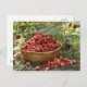 small thatch plate full of fresh wild strawberries, lies on the grass