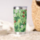 The bottle looks even better in real life. The ice cubes I put in lasts all day! I have my bottle with me all the time. It's summer and having something cold to drink feels amazing. With this bottle I always have something super cold. I have only tried the hot drink once and it lasted a long time as well. The color blue is a navy blue and the white printed on it is vibrant. It printed perfectly. I love my personalized smile water bottle.