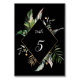 This wedding table number card features watercolor palm tree leaves, banana leaves, exotic tropical leaves, and faux gold leaves with a faux gold diamond shape frame. It's perfect for a tropical, beach, summer, or destination wedding.