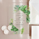 The design features an exotic array of green watercolor banana palm tree leaves, ferns, foliage, botanical plants and greenery for a tropical summer feel.