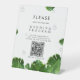 Wild Tropical Palm Leaves QR Code Wedding Program Pedestal Sign