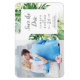 This wild tropical palm photo save the date magnet is perfect for a beach or destination wedding. The design features an exotic array of green watercolor banana palm tree leaves, ferns, foliage, botanical plants and greenery for a tropical summer feel. Personalize with your engagement photo, names, wedding date, and website address.