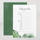 This wild tropical palm baby shower wishes for baby advice card is perfect for a beach theme baby shower or baby sprinkle. The design features an exotic array of green watercolor banana palm tree leaves, ferns, foliage, botanical plants and greenery for a tropical summer feel.