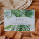 This wild tropical printable or printed online RSVP enclosure card is perfect for a beach or destination wedding. The design features an exotic array of green watercolor banana palm tree leaves, ferns, foliage, botanical plants and greenery for a tropical summer feel.