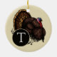 Customize this pretty, autumn themed design with a letter of your choice! An illustration of a wild turkey in the grass graces this monogrammed ornament. The monogram, in a classic serif font, is centered on a black circle beside the bird. It's perfect for thanksgiving! Makes a great gift for hunters and nature lovers, too.
