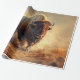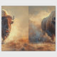 A bold Western-themed painting of a wild bison kicking up dust as it runs, capturing the raw power and untamed spirit of the American frontier.