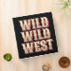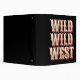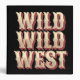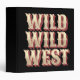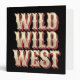 Retro style grunge "Wild Wild West" text design with striped letters in yellow, red and beige colors