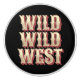 Retro style grunge "Wild Wild West" text design with striped letters in yellow, red and beige colors