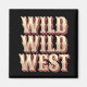 Retro style grunge "Wild Wild West" text design with striped letters in yellow, red and beige colors