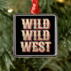 Retro style grunge "Wild Wild West" text design with striped letters in yellow, red and beige colors