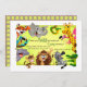 Happy jungle animals frame this colorful birthday party invitation perfect for either gender. (<a href='http://www.freepik.com/free-vector/birthday-card-with-cute-animals_1014149.htm'>Designed by Freepik</a>). <br/><br/>The card is easy to customize with your wording, font, font color and choice of six paper types.<br/><br/>Not exactly what you're looking for? All our products can be custom designed to meet your needs at no extra charge.<br/><br/>Simply contact us at askcottonlamb@gmail.com<br/><br/>Coordinating products available: