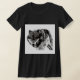 I love wearing a reprint of my colored pencil drawing of Annie the cat looking over the hillside. My illustration is based on a picture I took of Annie the manx cat. The printing turned out lovely, and the shirt is soft and thick. The American Apparel shirt run on the smaller size, so I always order a large or extra large.